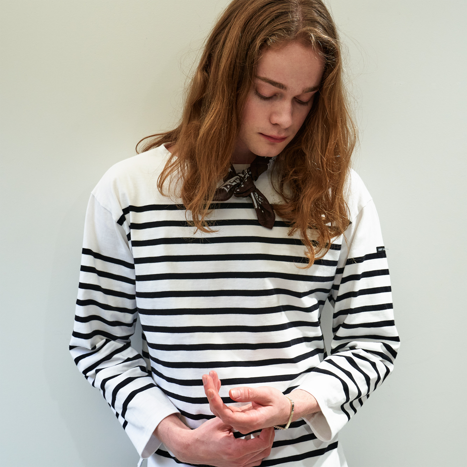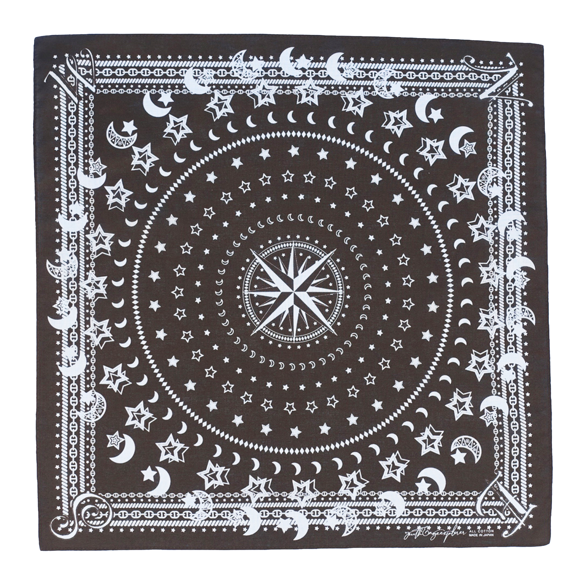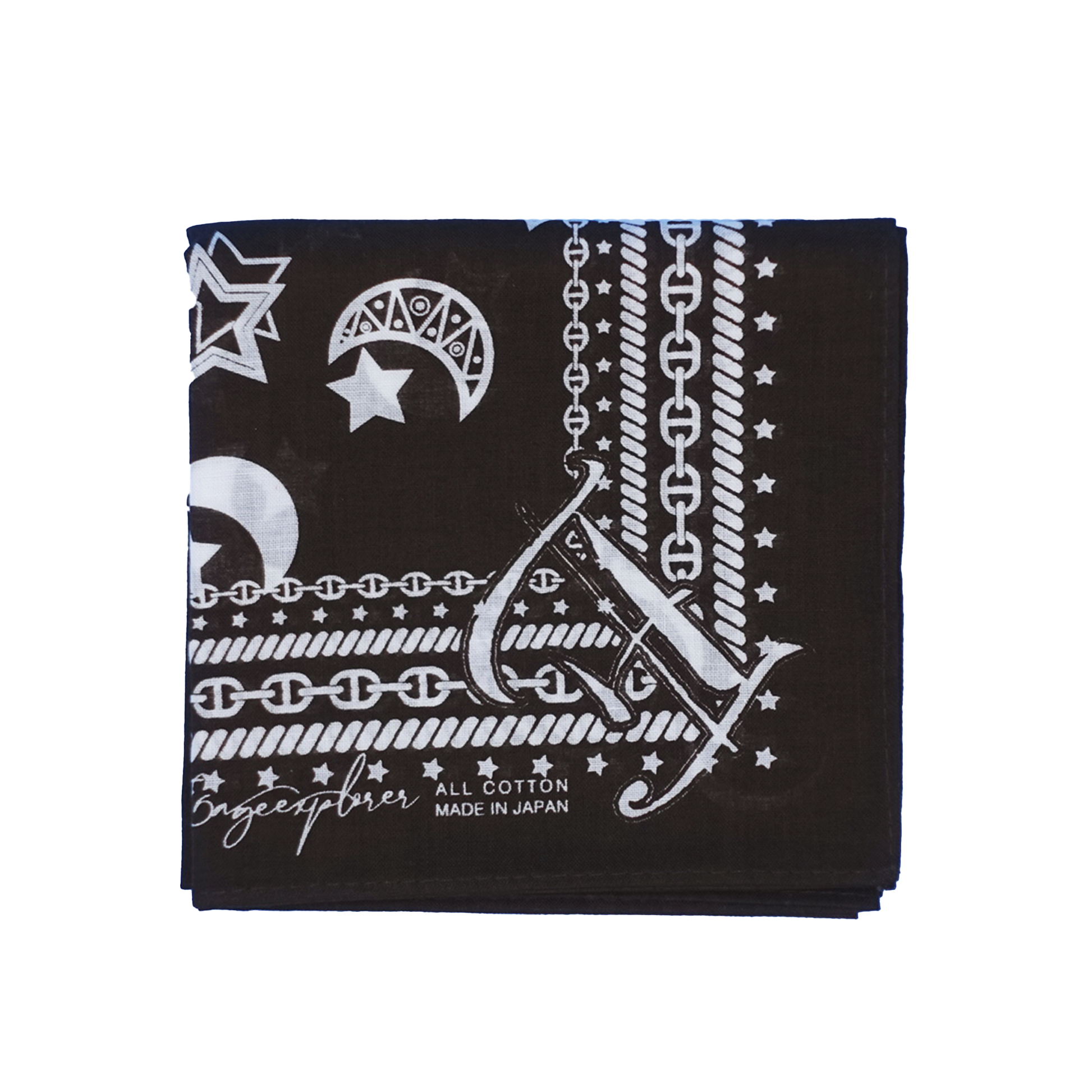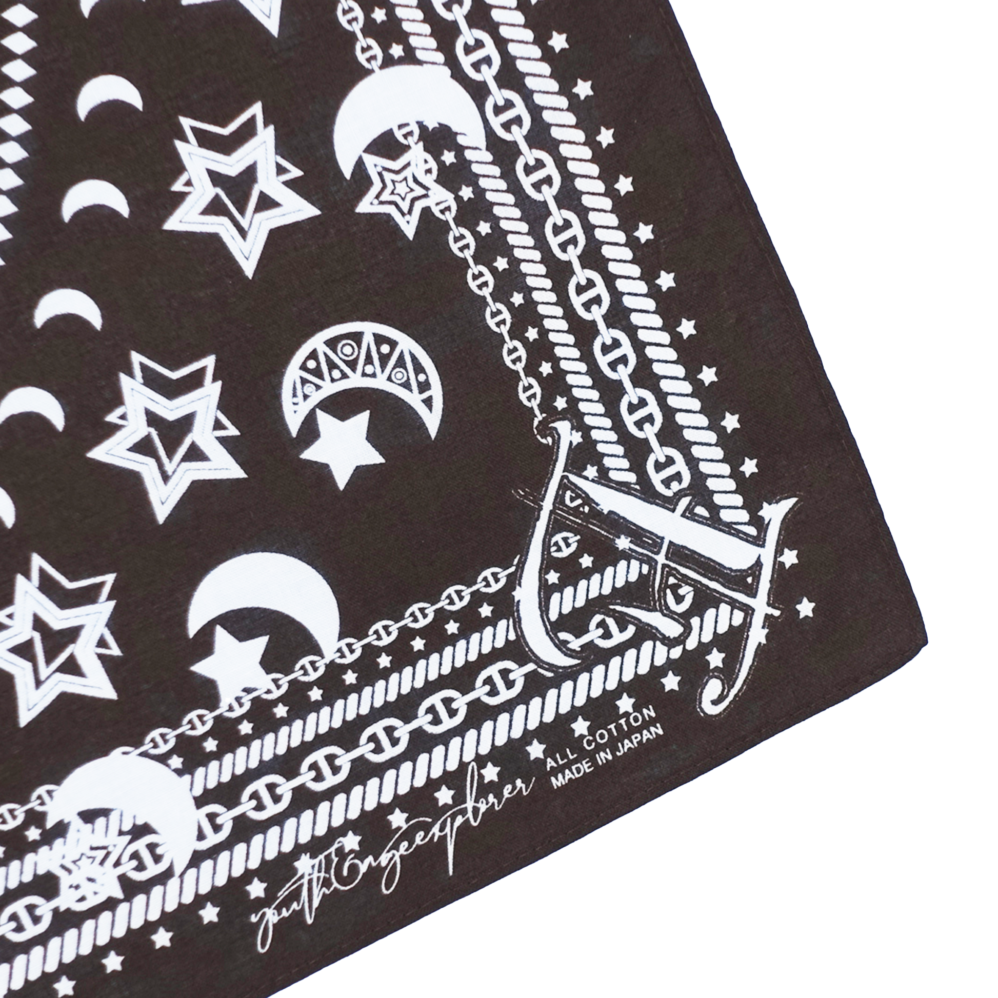 ブランドのシグネチャーの月と星、海や船にまつわるアンカーチェーン、ロープのモチーフでデザインされたバンダナです。